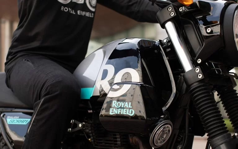 De Himalayan-voorruit en de voordrager zijn weggehaald, dit draagt bij aan de flair die je bij een scrambler graag ziet. De ontwerpers van Royal Enfield moesten de cockpit van de fiets stroomlijnen, en dat deden ze met een gegoten metalen koplamp. Slim ontwerpwerk van het team bij Royal Enfield heeft ervoor gezorgd dat alle overtollig montage-materiaal netjes weggewerkt is en bewerkt met stoere stickers en graphics.