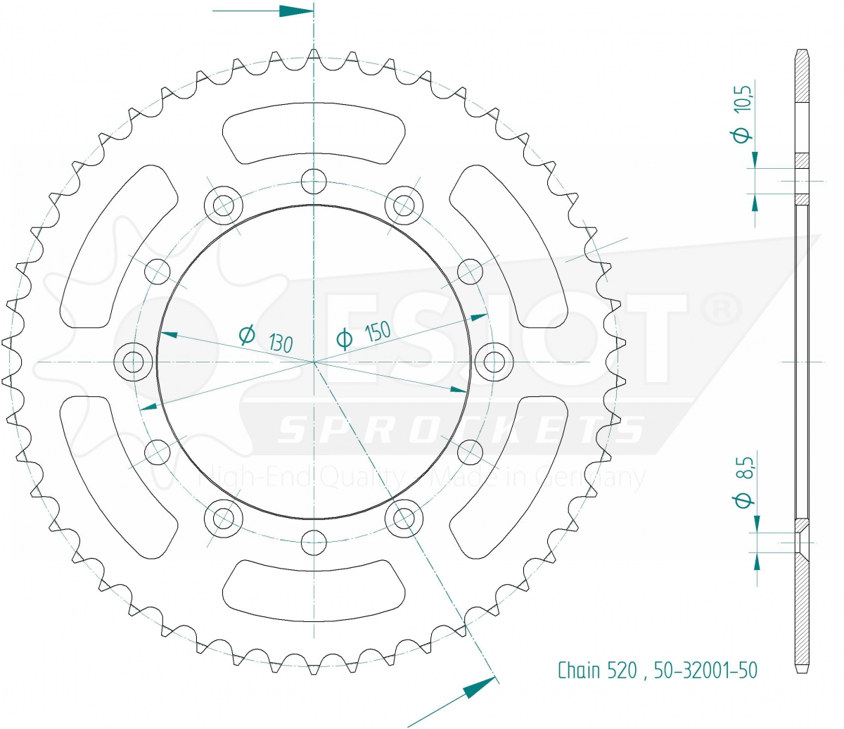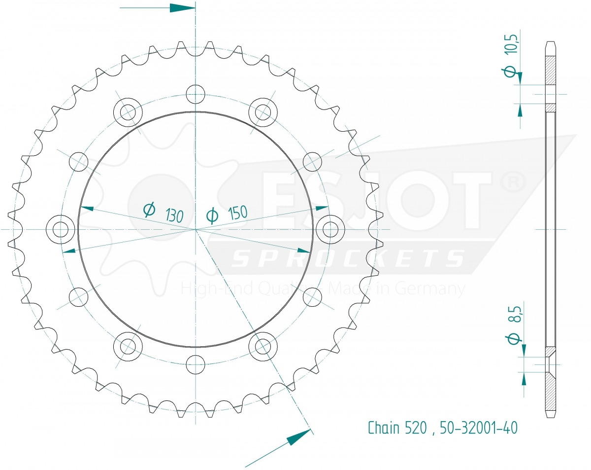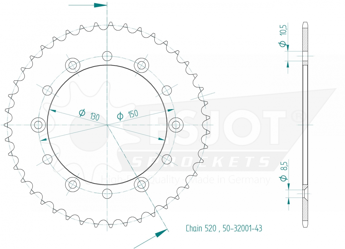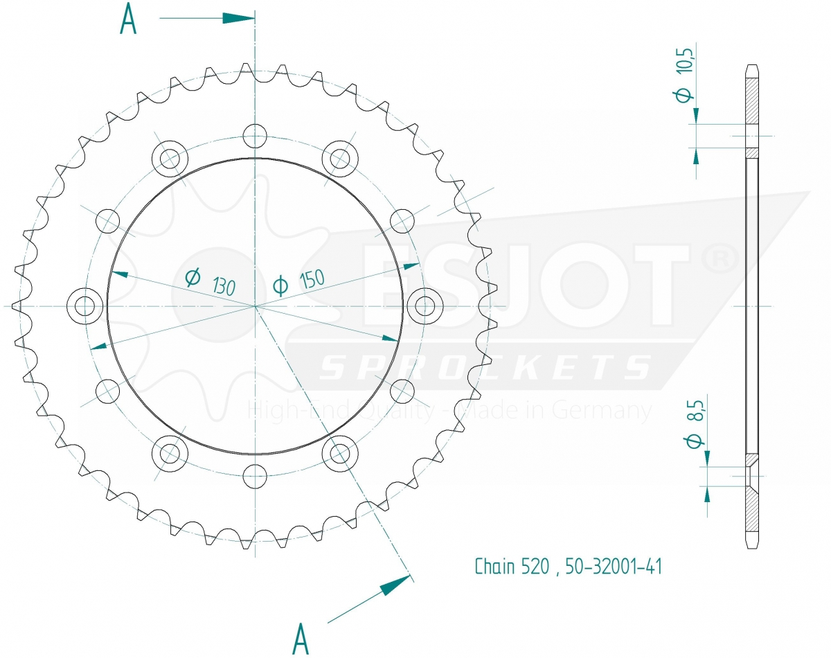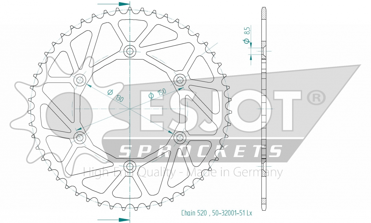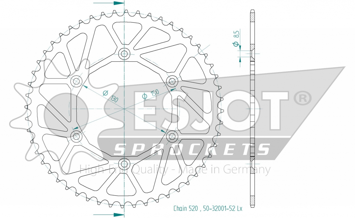 REAR STEEL LIGHT 52T, 520
