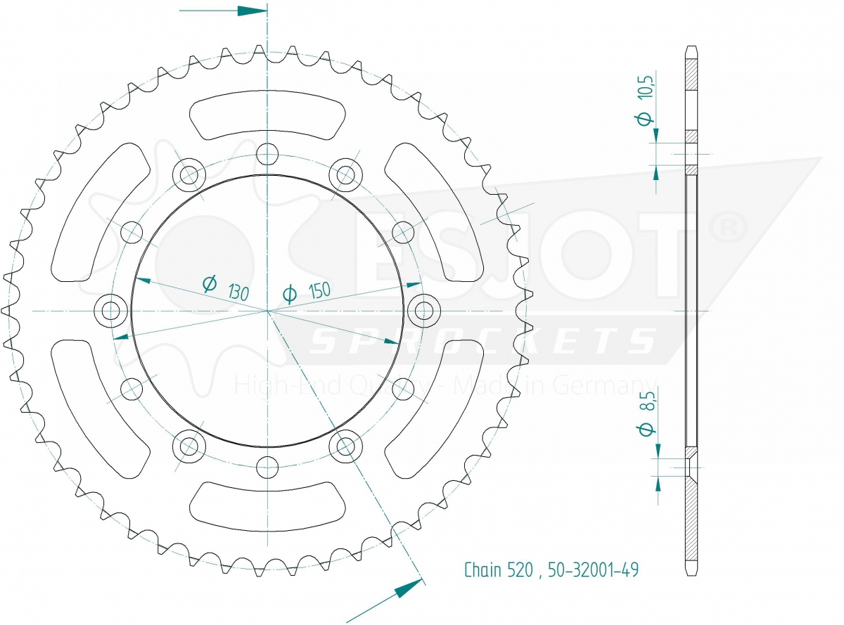 REAR STEEL LIGHT 49T, 520