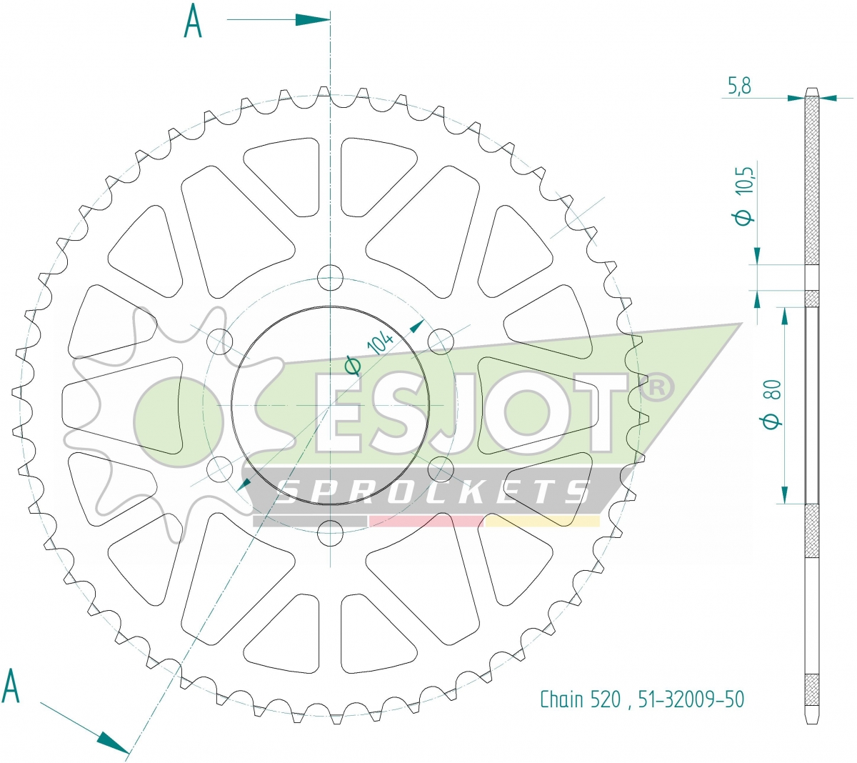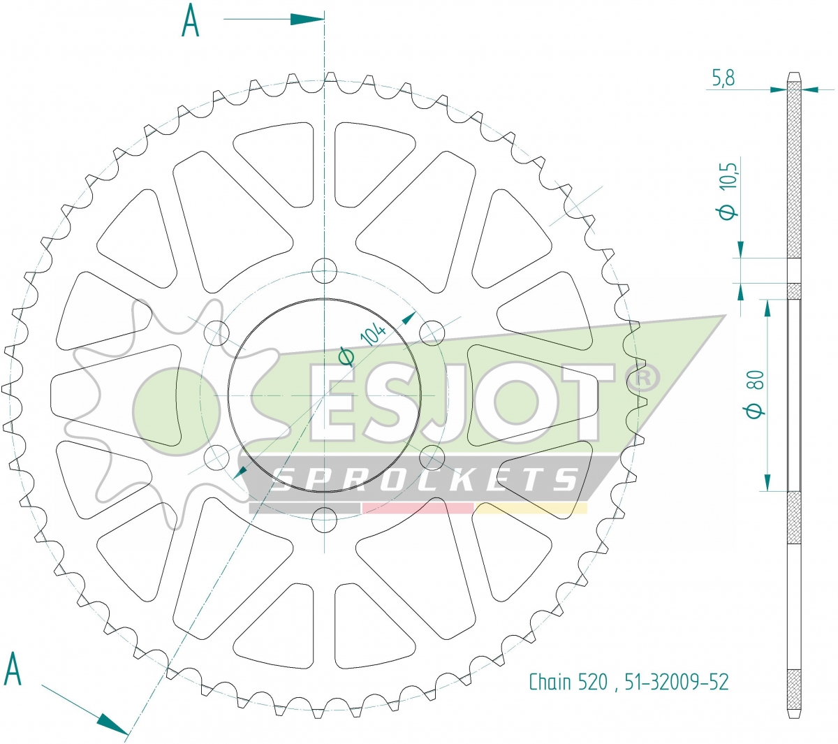 REAR ALU 52T, 520
