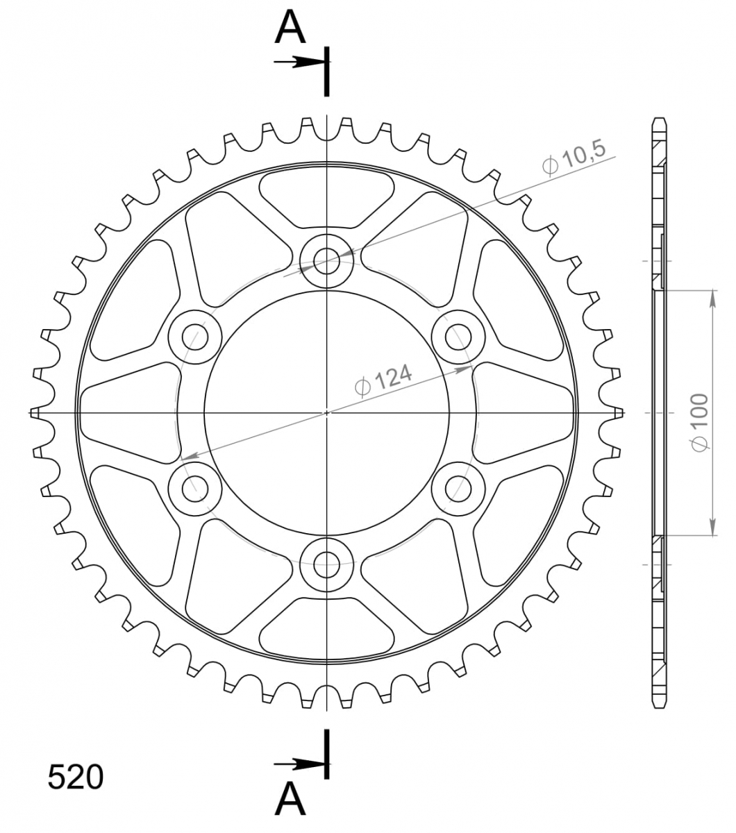 REAR STEEL 46T, BLACK, 520