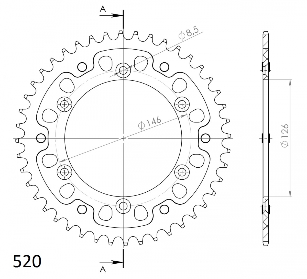 REAR STEEL 50T, BLACK, 520