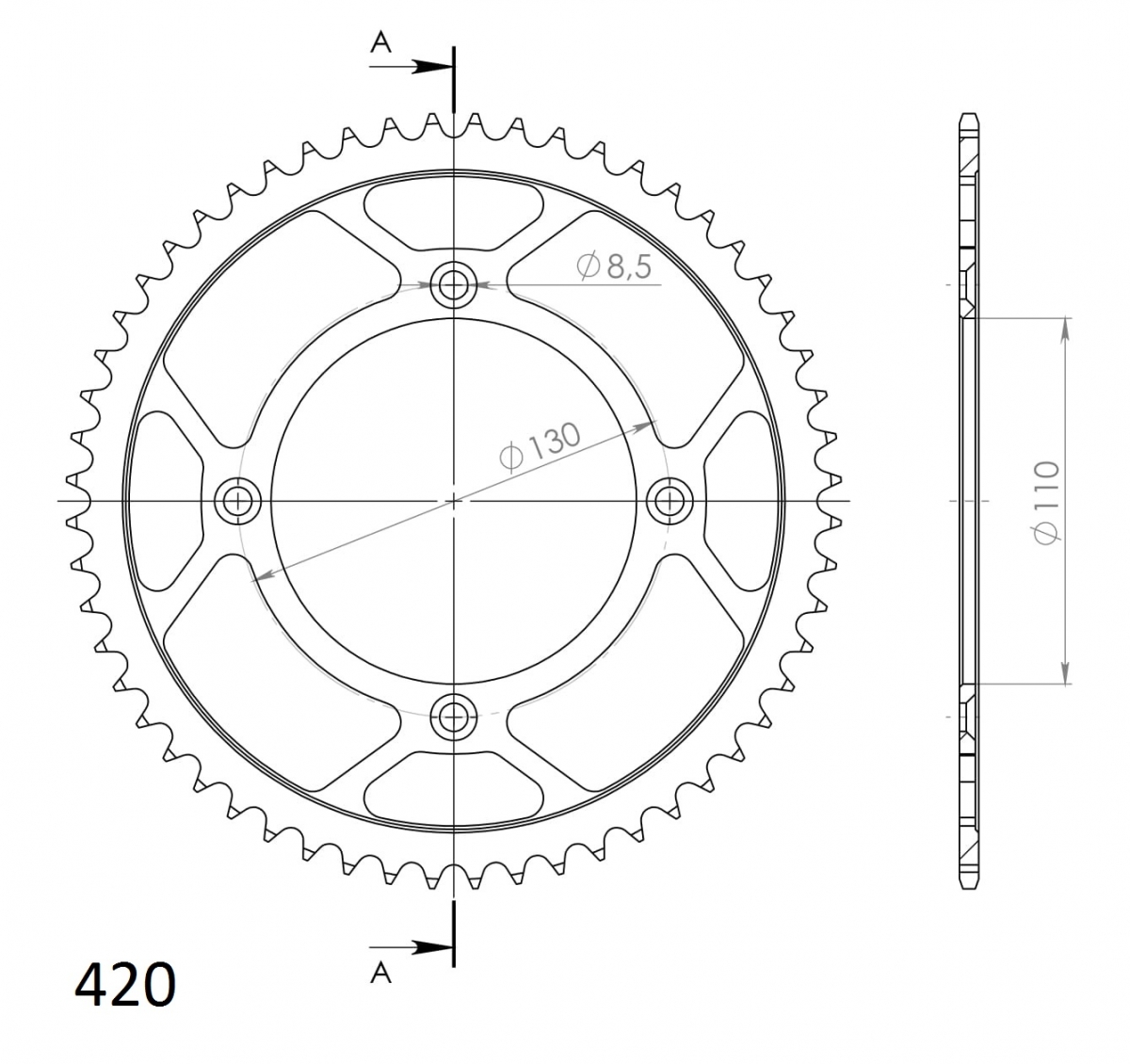 REAR STEEL 56T, BLACK, 420